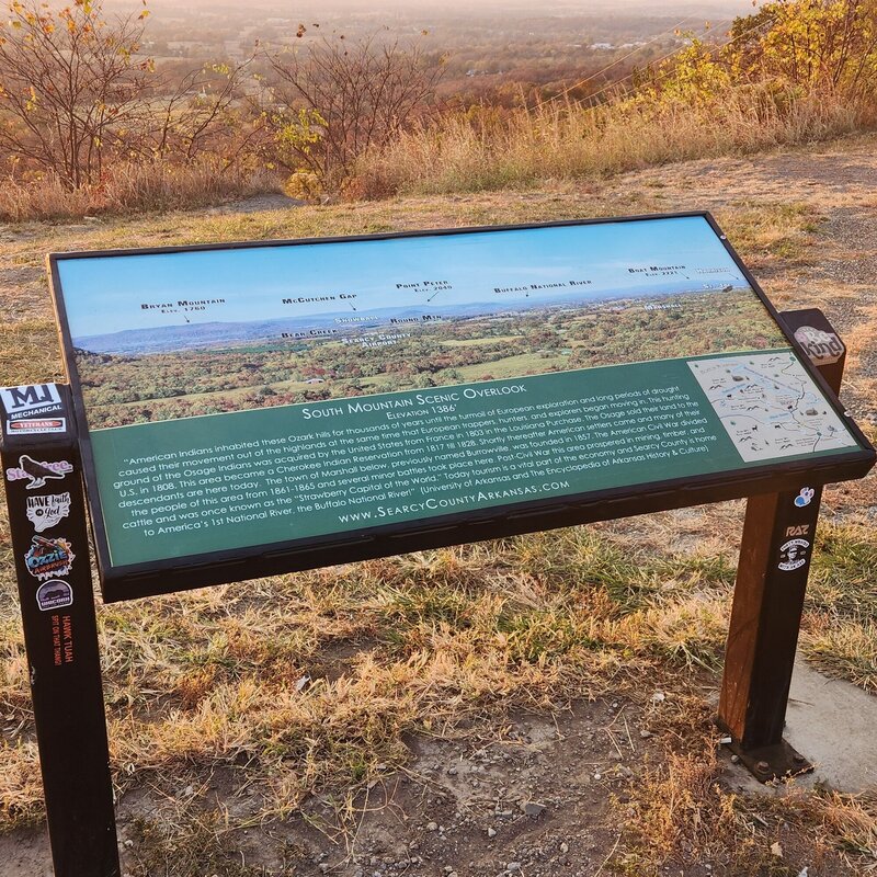 The Marshall Overlook along US Highway 65 is one of the most panoramic Ozark vista's in all of Arkansas!  Picnic tables available as well as the Rock N Java pottery, gift and coffee shop!  Magnificent site to take in a sunset!  Historic marker & interpretive sign on-site!