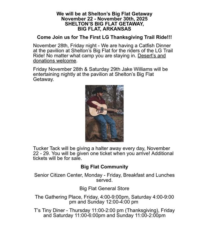 Thanksgiving Trail Ride at Shelton's Big Flat Getaway! Website sheltongetaway.com