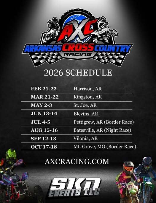 Arkansas Cross Country Racing coming back to St. Joe May 2-3! If you're a racer traveling from a distance, you can reserve an RV spot at Humming Pines RV Campground so you can wake up refreshed and ready to race! Reserve your spot at Hummingpines.com . To reach them, call 870-439-2810.